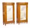 Coppia di armadi in ciliegio ad un'anta a specchio, fascia superiore decorata d