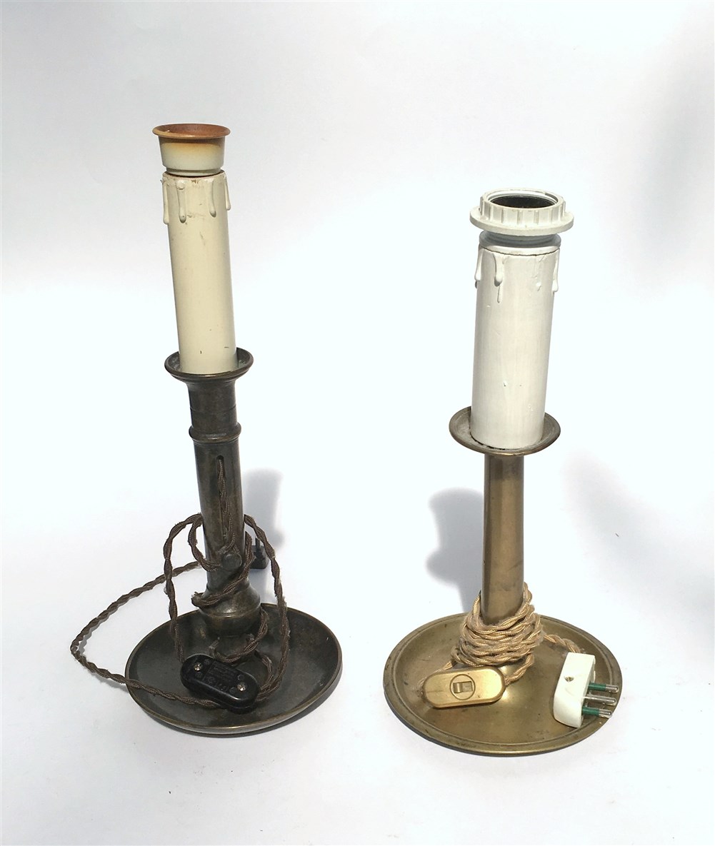 Lotto composto da due portacandele in ottone e bronzo. Secolo XIX (montati a luce elettrica in epoca posteriore)