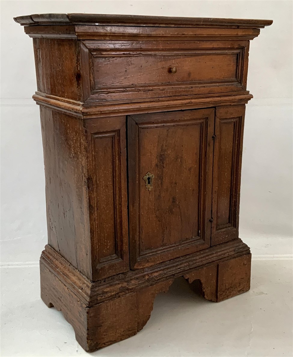 Antico credenzino in noce ad un'anta e piano apribile (cm 56x77x32) (difetti)