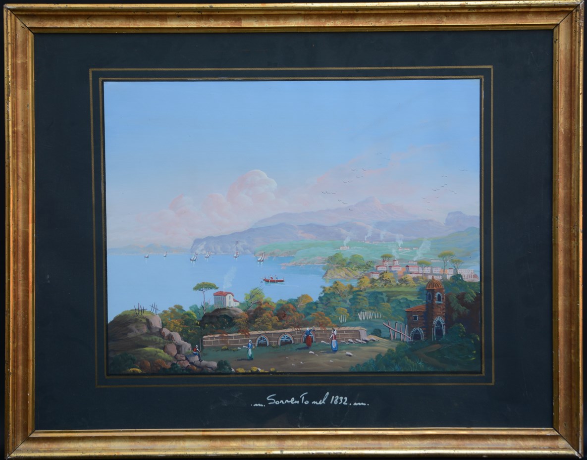 Ignoto "Veduta di Sorrento" gouache su carta (cm 53x70) in cornice (lievi difet
