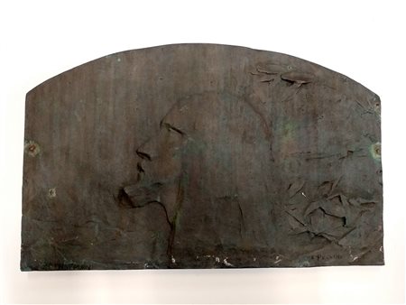 "Gethsemani" placca bassorilievo in bronzo firmata in basso a destra e titolata a sinistra (cm 39x61) (Difetti)