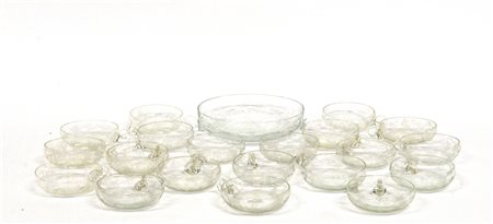 Servizio da dessert composto da venti coppette ed una ciotola biansata, in vetr
