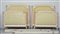 Coppia di letti singoli in legno laccato con testate e pediere rivestite in tes