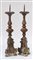 Coppia di candelieri in legno intagliato e laccato con tracce di doratura a mec