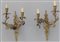 Coppia di appliques in bronzo dorato a due fiamme decorate con fiorellini in po