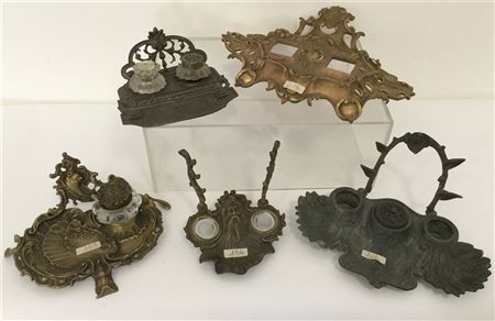 Gruppo di cinque calamai Liberty in metallo (difetti e mancanze)