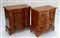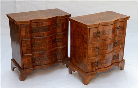 Coppia di comodini con fronte mosso con cassetto ed un'anta, filettati in legno