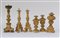 Lotto composto da tre piccoli candelieri e tre elementi decorativi in legno int