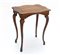 Tavolino in noce con piano sagomato, gambe mosse terminanti a piedi caprini. Se