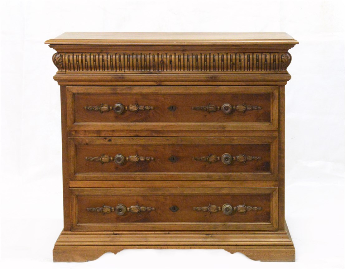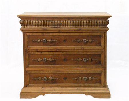Cassettone a tre cassetti e mezzo con fascia superiore intagliata e scanalata (