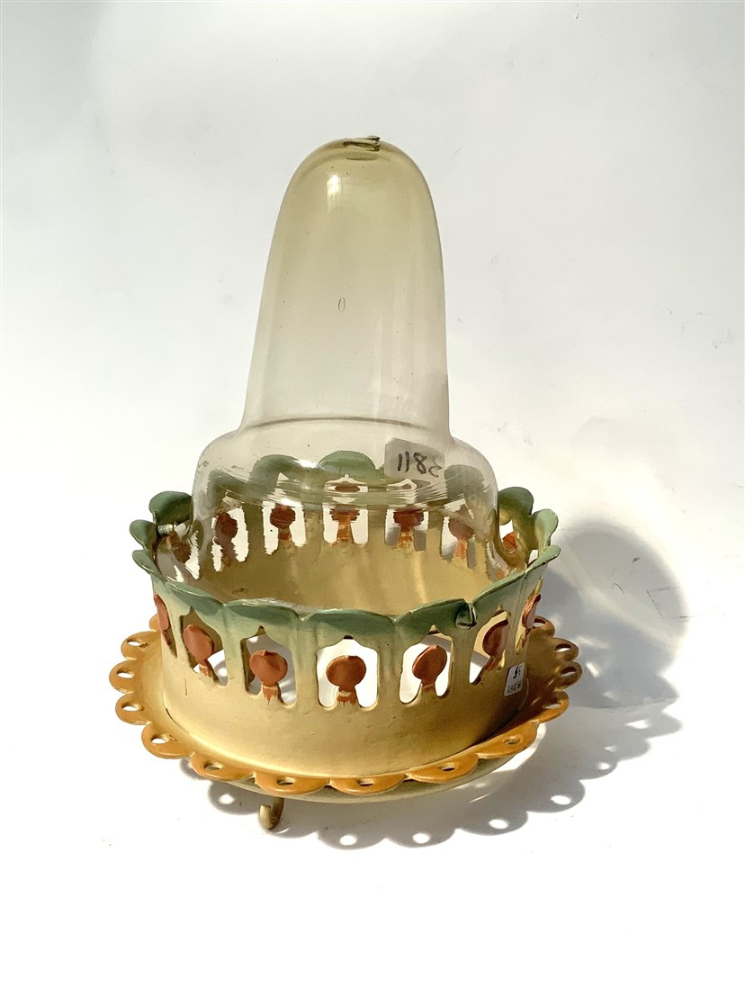 Lanterna da parete a una luce in ferro battuto, sagomato e dipinto (h cm 72) (lievi difetti)
