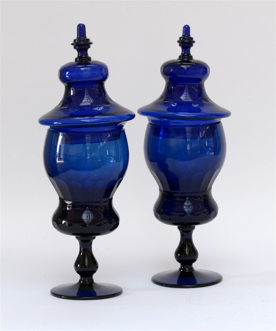 Lotto 3826 | Coppia di compostiere con coperchio in vetro blu (h cm 43)