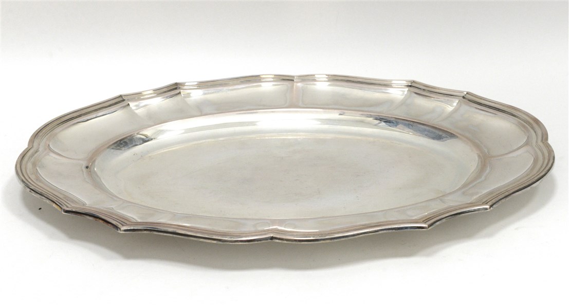 Lotto 3844 | Grande pesciera con bordo mistilineo. Tiolo 800 (cm 45x33) (g 1200 ca.)