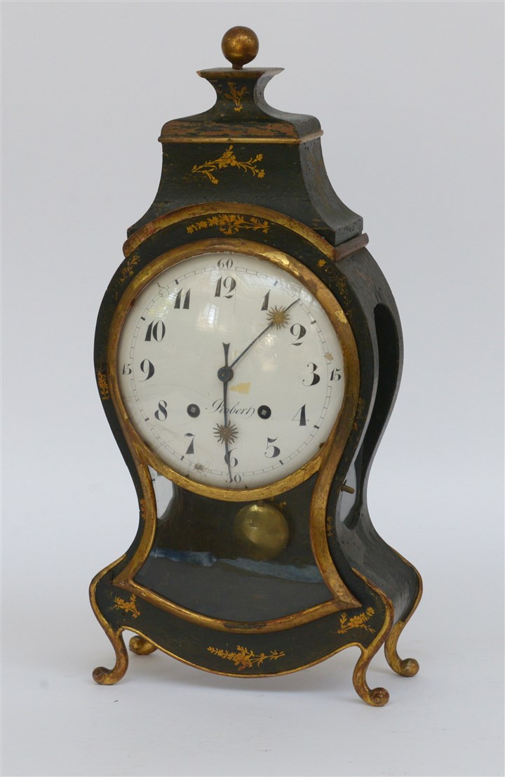 Lotto 3853 | "ROBERT Pendola da camino con cassa in legno laccato e dorato quadrante a smalt