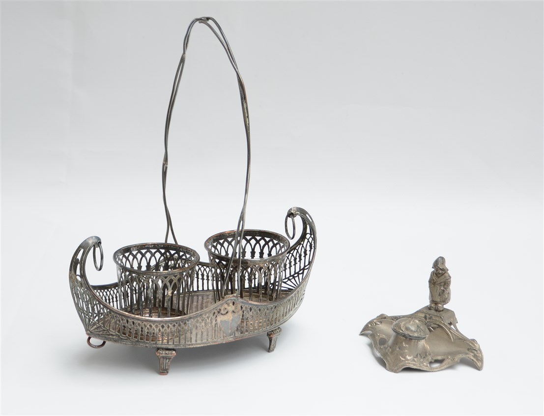 Lotto 3895 | Lotto composto da un portampolle ed un piccolo calamaio liberty in metallo (dif