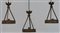 Gruppo di tre lampade a sospensione in metallo ad una luce con fascia decorata
