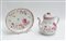 Manifattura del secolo XVIII, teiera e vassoio da portata ovale in porcellana dipinta con fiori sparsi (difetti)