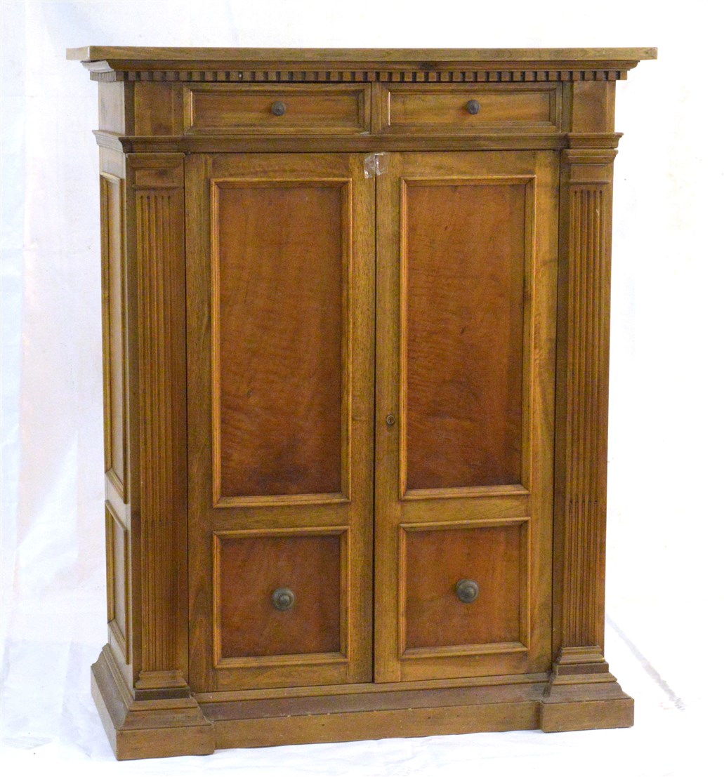 Credenza a due cassetti e due ante con montanti a mezza colonna squadrata e scanalata (cm 104x140x50) (difetti)