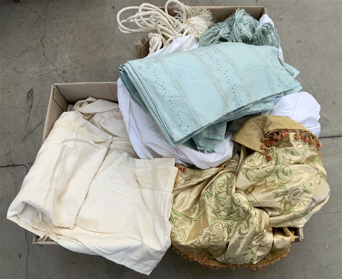 Lotto contenente vari tessuti, pizzi e cordoni per embrasse di varie fogge e di