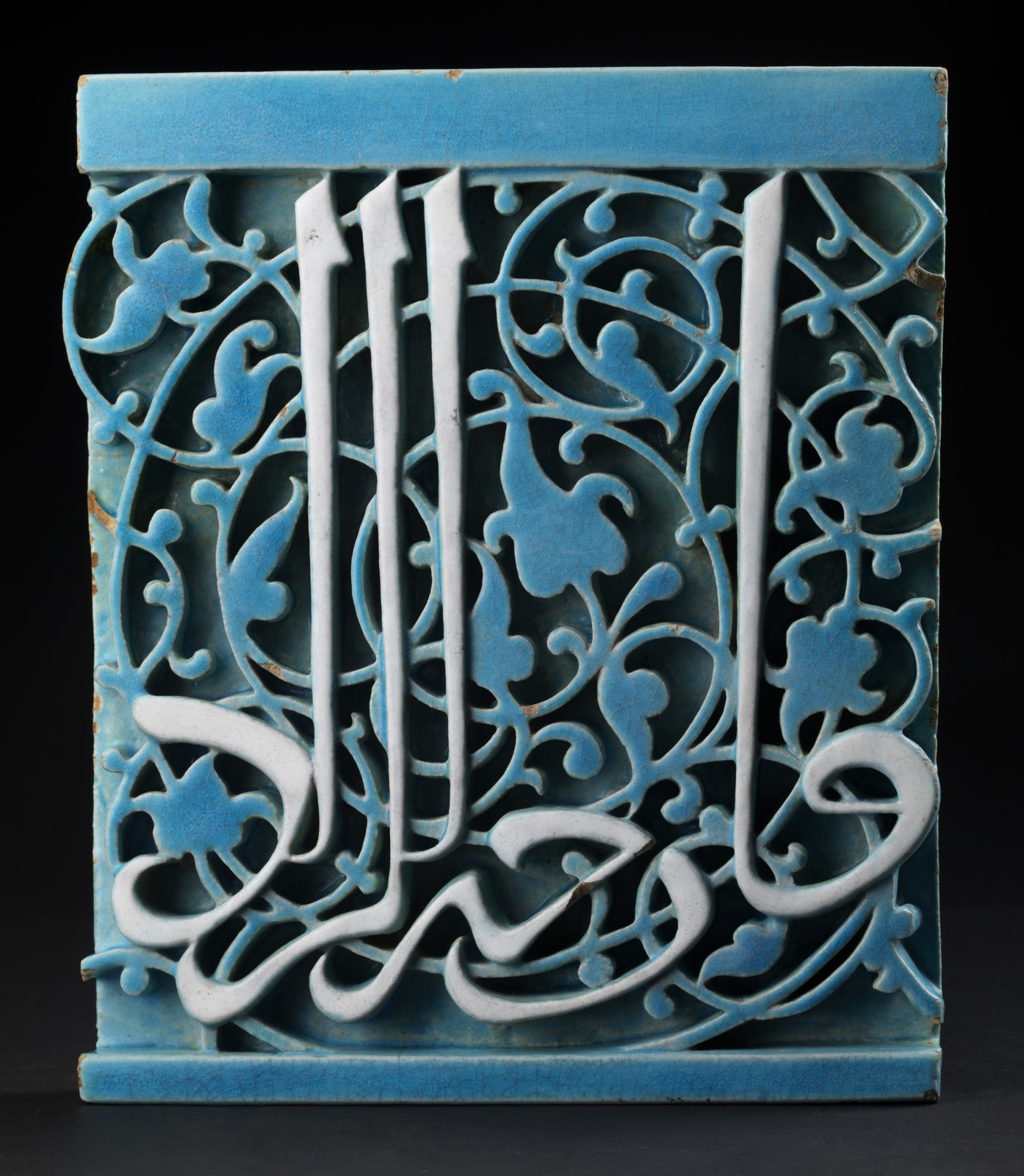 Arte Islamica A turquoise calligraphic tile Central Asia, possibly Samarkand, Timurid period, 14th-15th century or later .