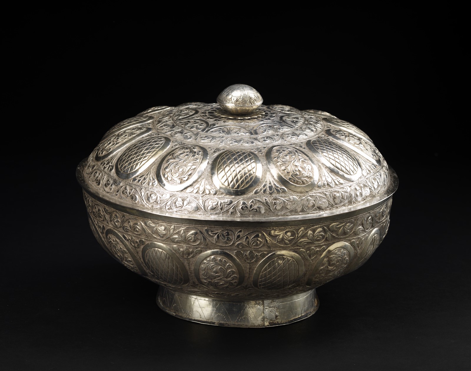 Arte Islamica A silver embossed Indian or Ottoman lidded bowl 19th century .