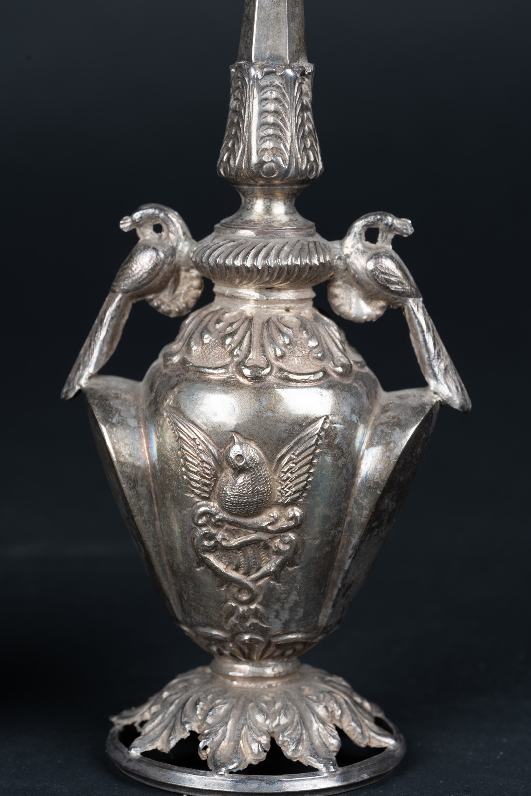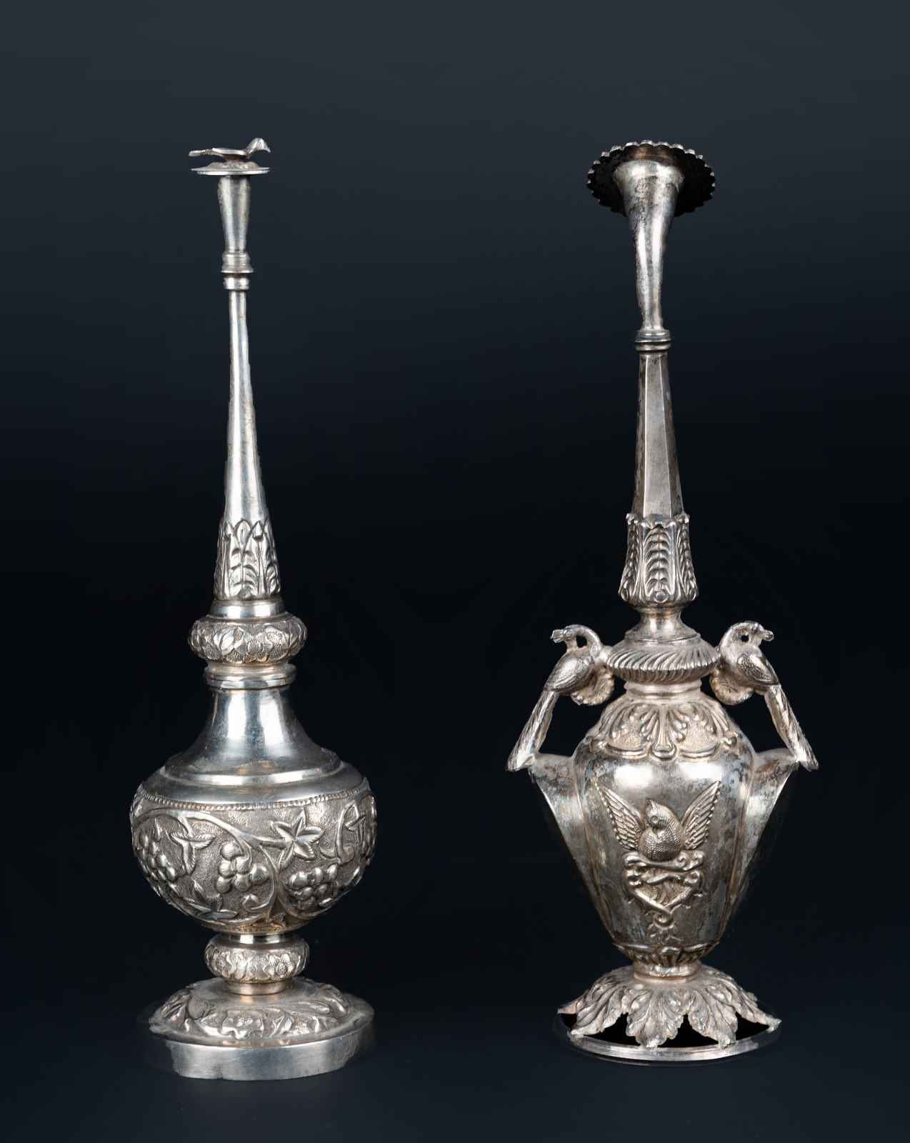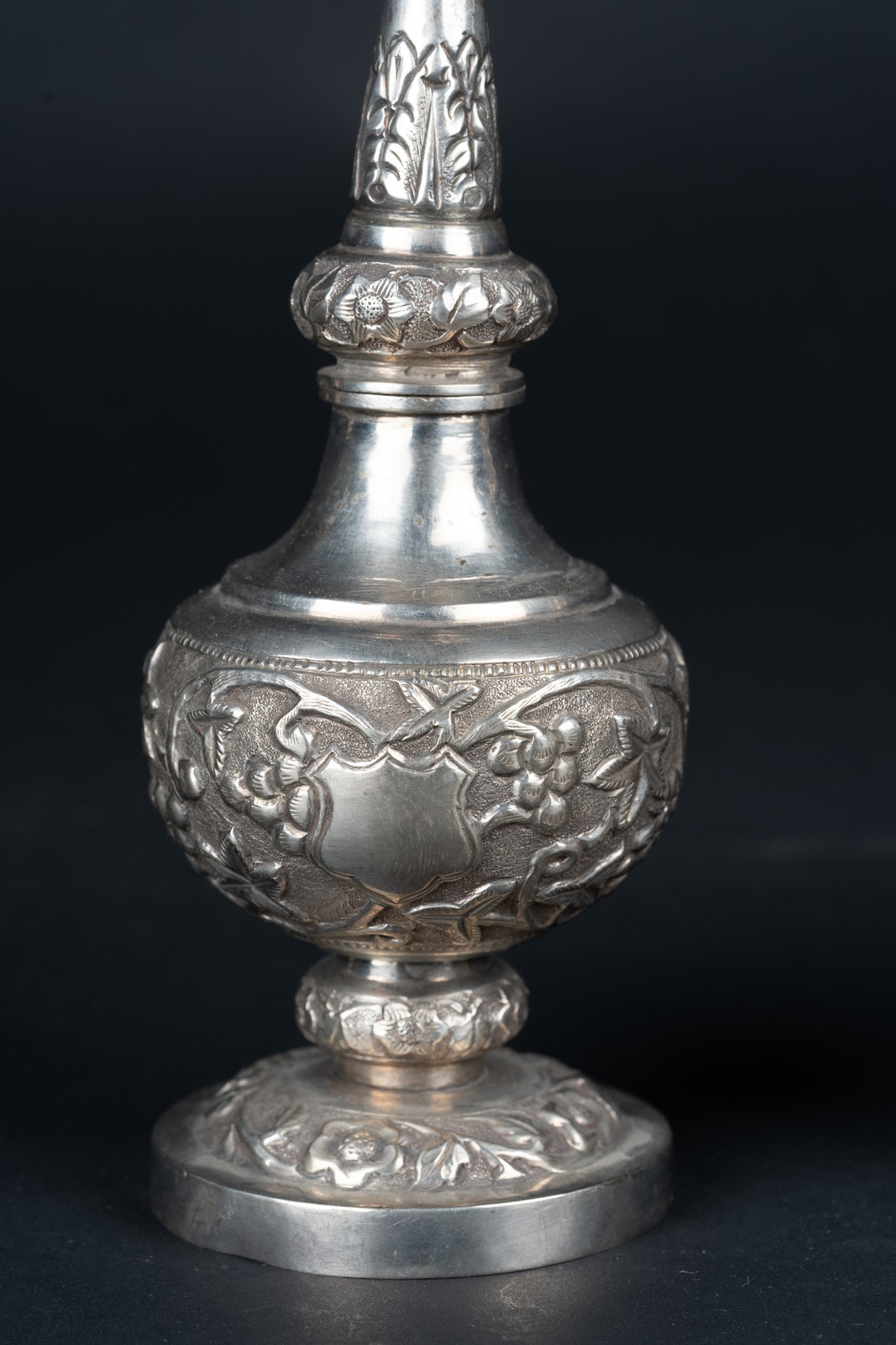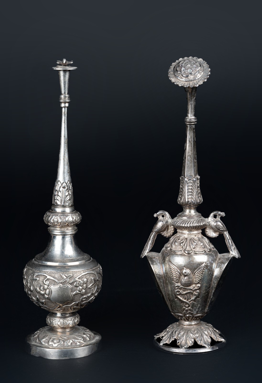 Islamic Art Two silver embossed rose water sprinklers India, 19th century . . Cm 25,00.