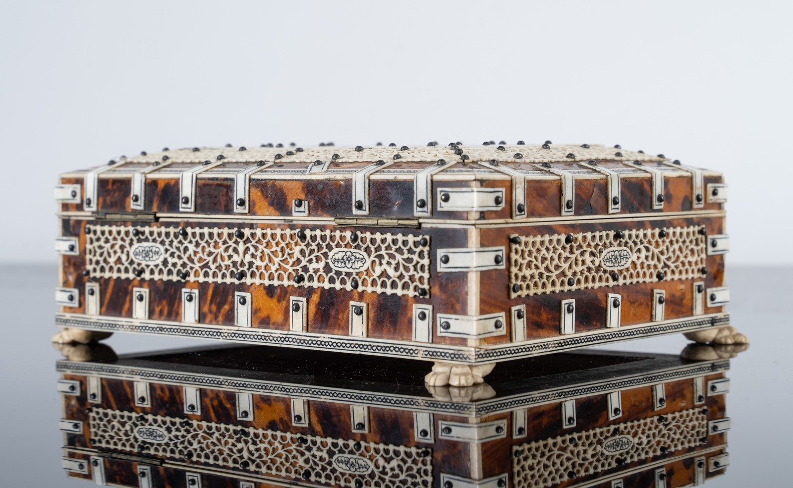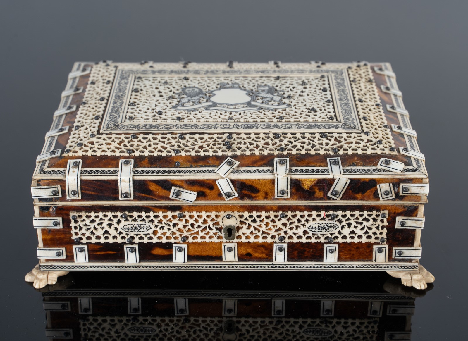 Arte Islamica A Vizagapatam Anglo-Indian ivory and tortoiseshell veneered box India, early 20th century .