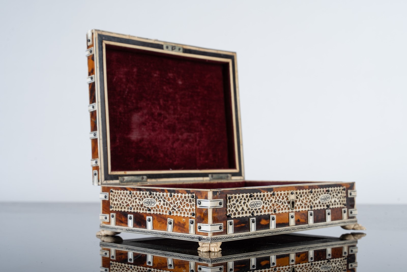 Islamic Art A Vizagapatam Anglo-Indian ivory and tortoiseshell veneered box India, early 20th century . . Cm 20,50 x 6,50 x 15,50.