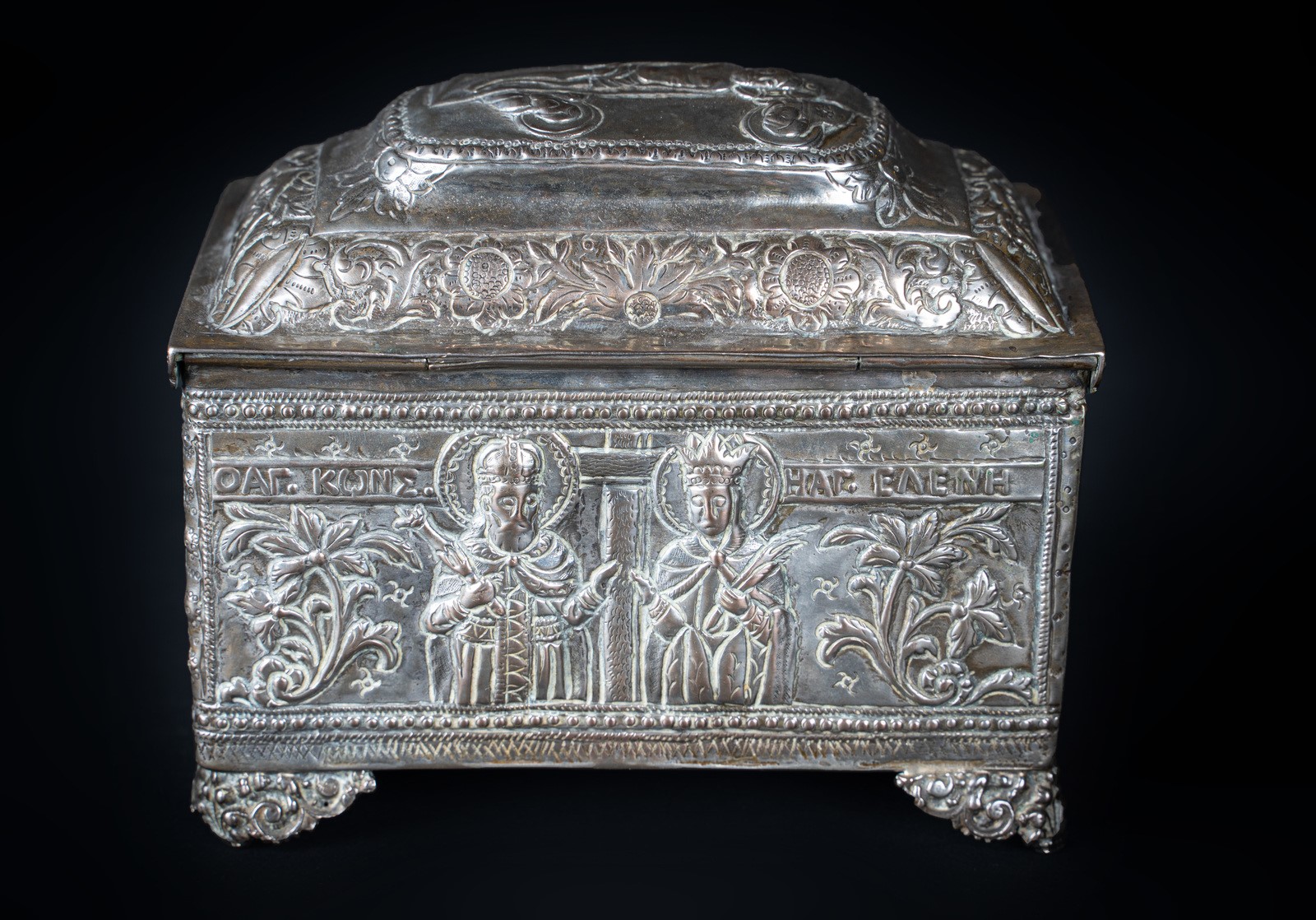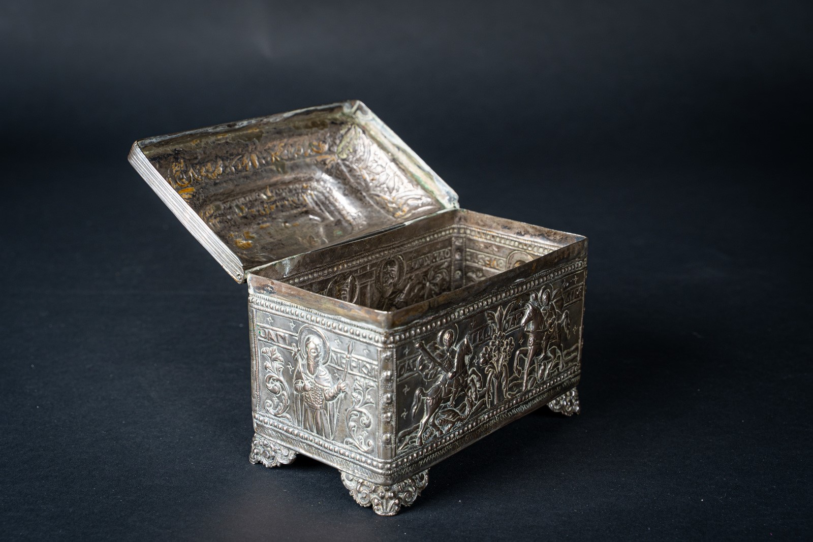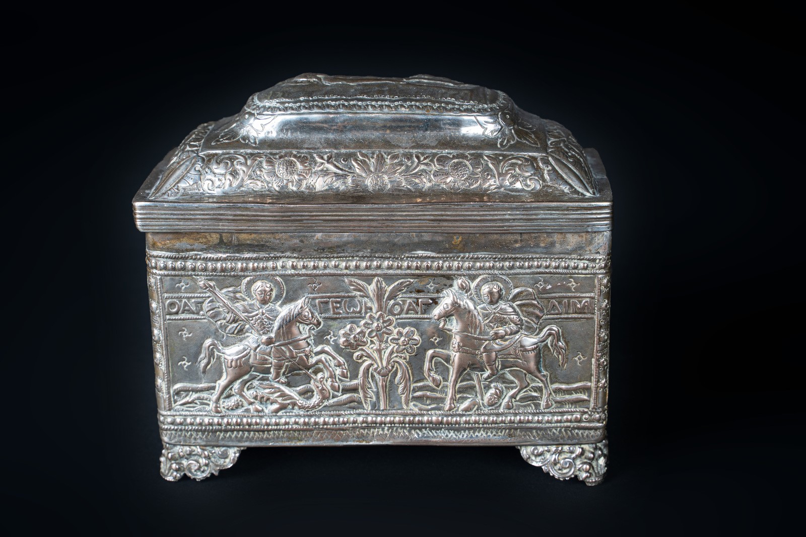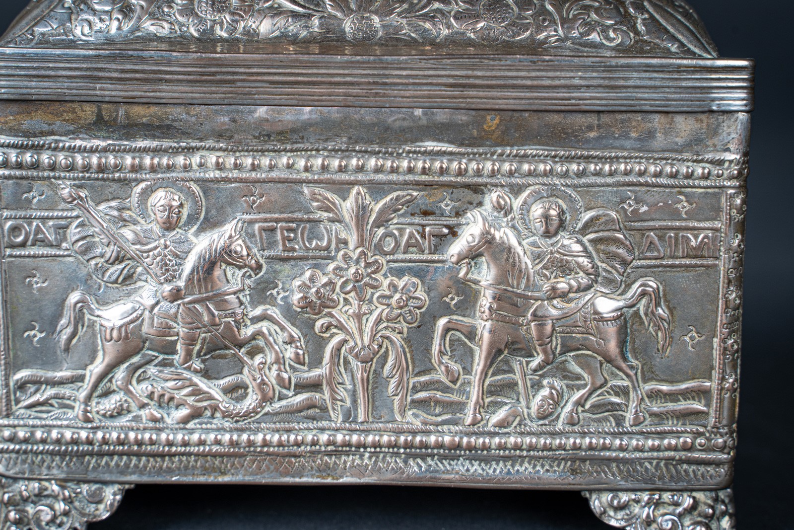 Arte Islamica An Ottoman silver box embossed with saints Greece, 18th-19th century.