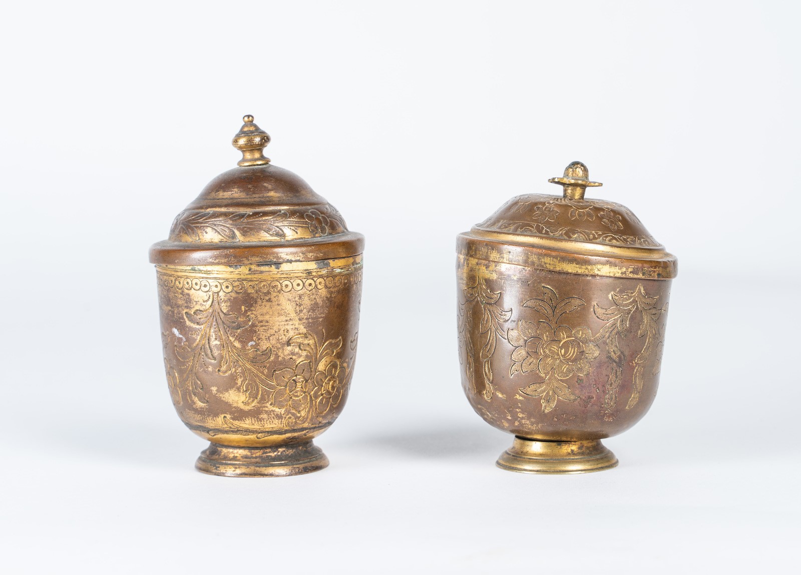 Islamic Art Two Ottoman tombak lidded vases Turkey, 18th century . . Cm 14,00.