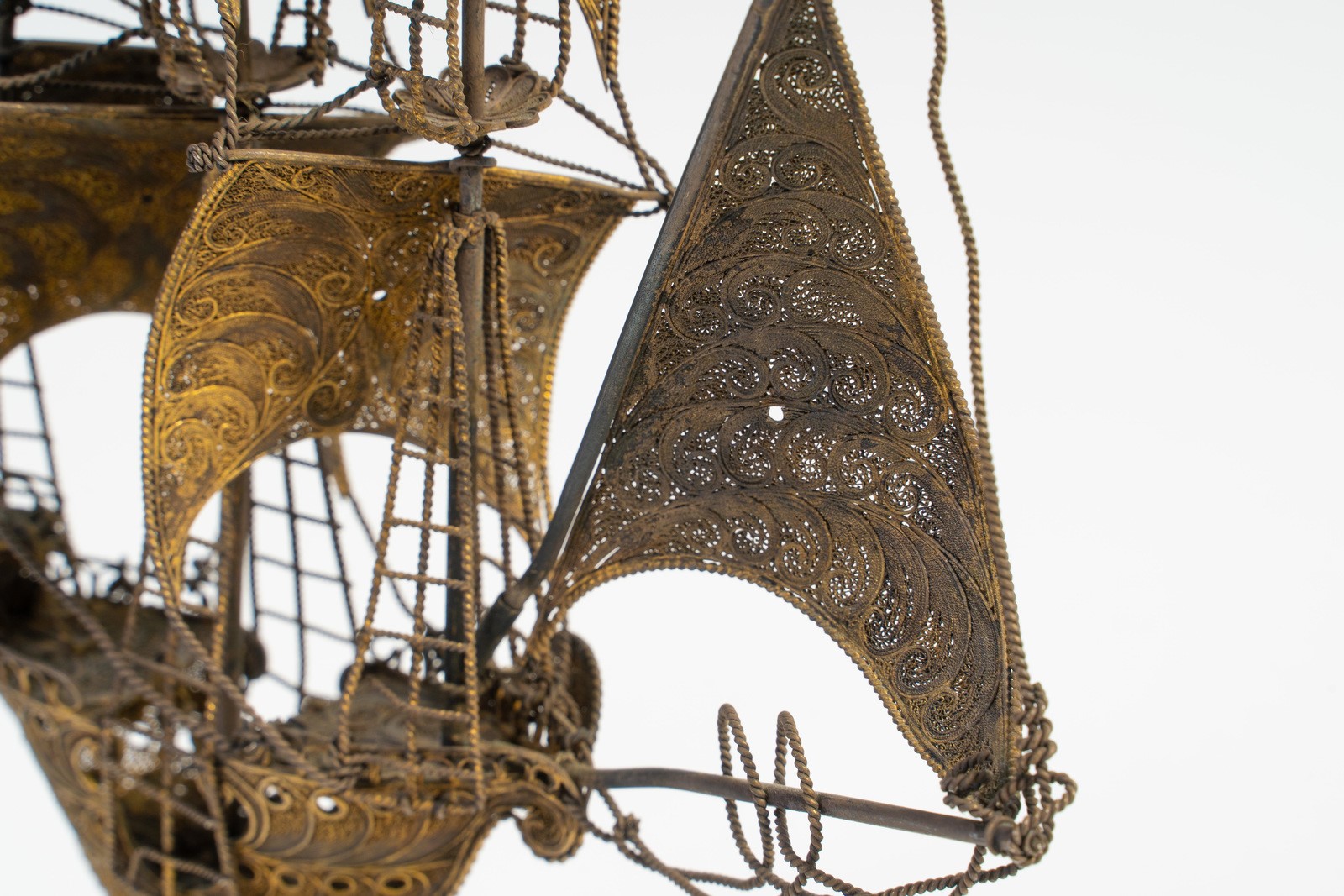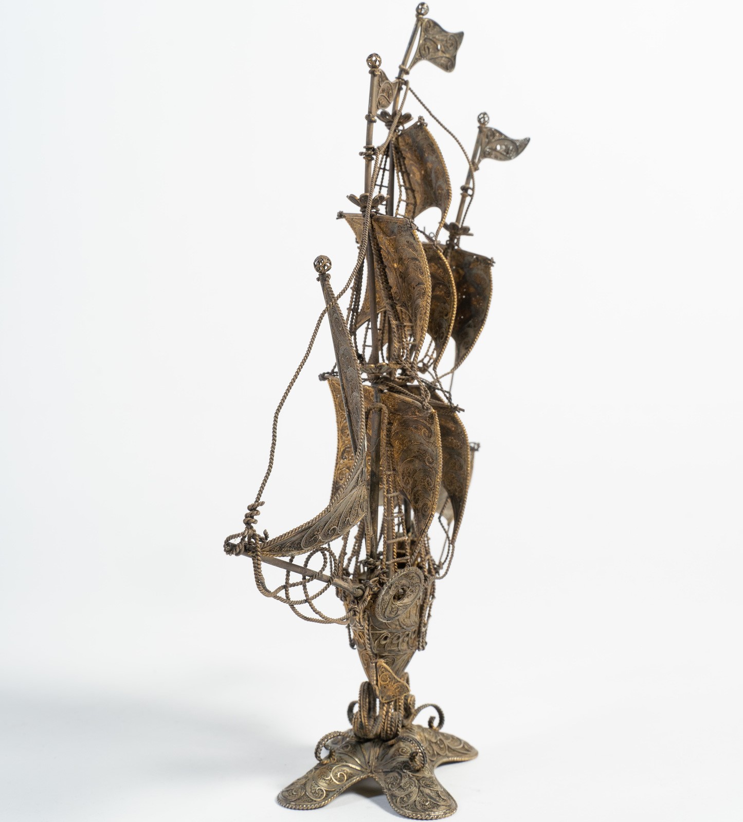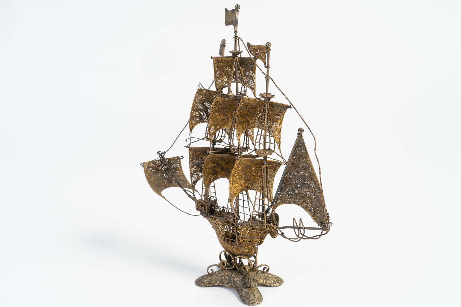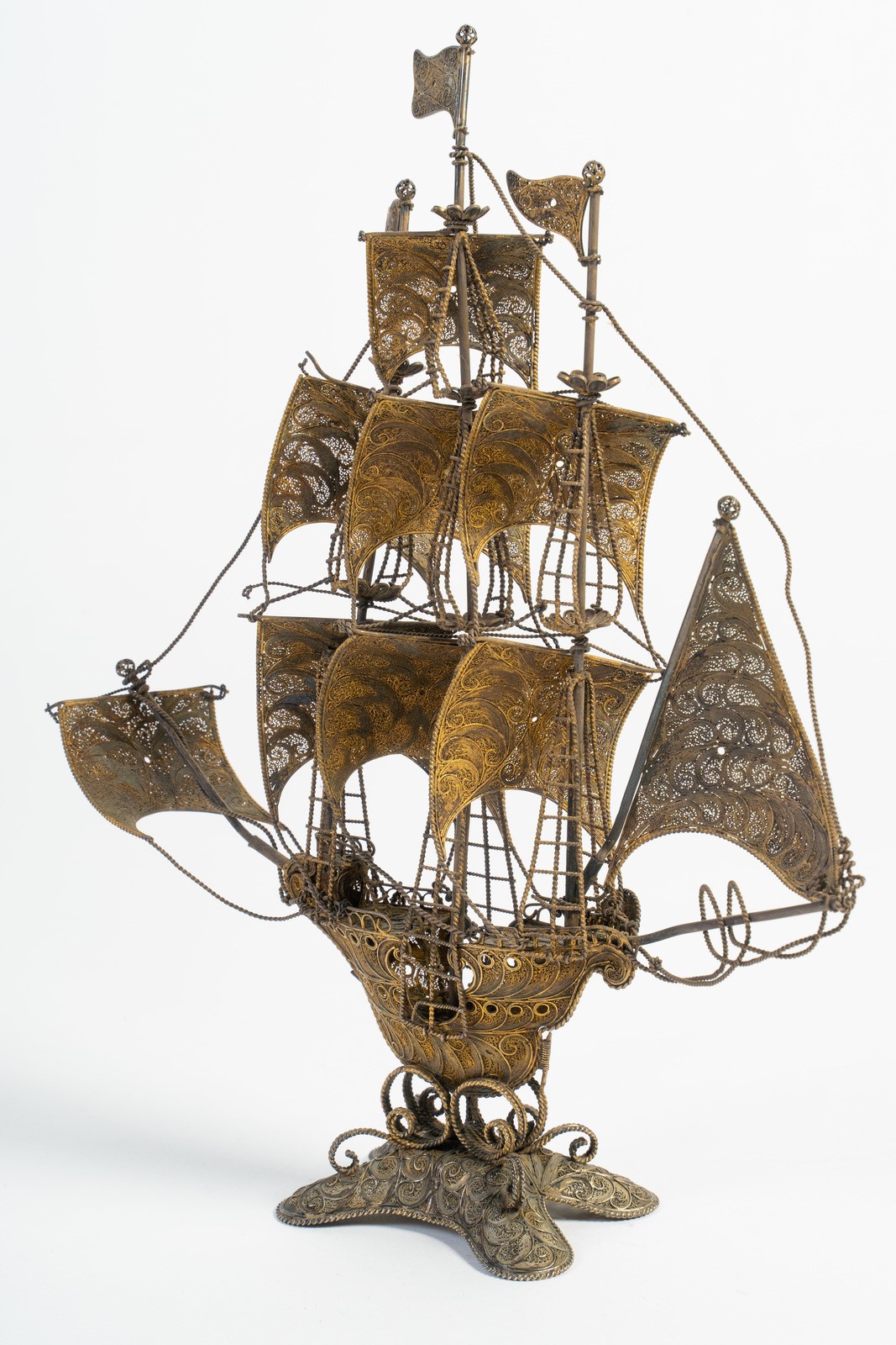 Arte Islamica A extremely fine gilded silver filigree Indo-portuguese ship India, possibly Goa, 18th-19th century .