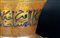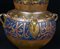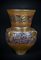 Islamic Art A small enamelled glass mosque lampPossibly Europe, 19th century . . Cm 11,50 x 16,00. Text: verses of Sura n. 24A Mamluk mosque lamp with the same colors, blazon and design is at the British Museum, Acc. No. 1869,0624.1.Restored and missing foot.