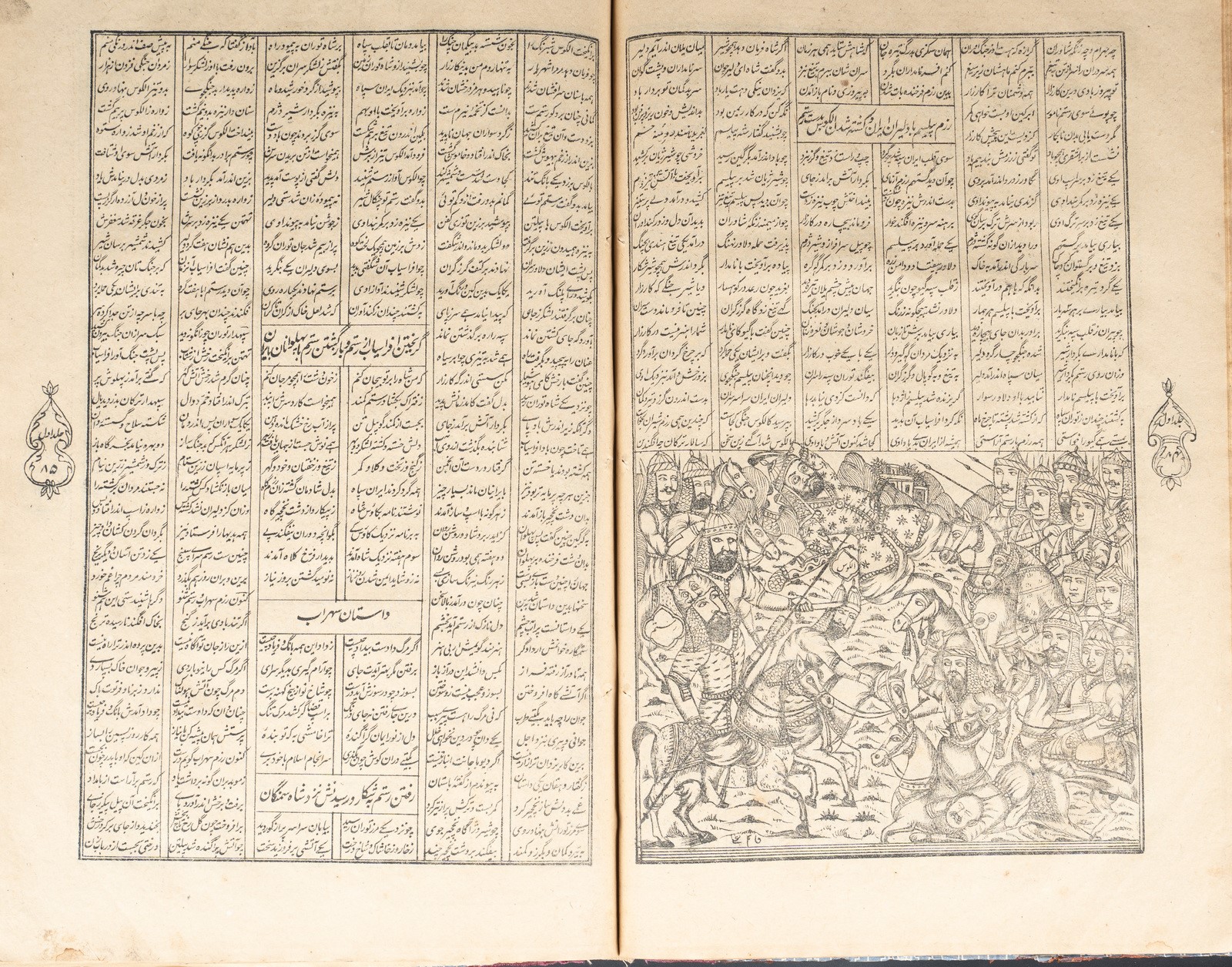 Islamic Art A large printed Shahnameh with Qajar style illustrationsPersia, dated 1291 AH (1875 AD) . . Cm 26,50 x 42,00.