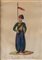 Islamic Art Five watercolor paintings on paper with gold highlights depicting various charactersEurope or Turkey, late 19th century . . Cm 11,00 x 16,00. An English caption identifies the characters as follow:the standard bearer; the Turkish woman; the Mufti; the Colonel of Artillery and the Ambassador's guard.