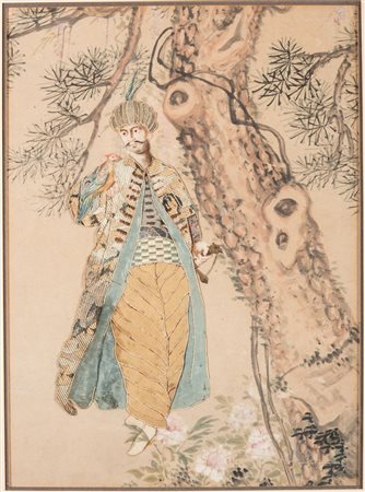 Arte Islamica A Chinese painting completed with an Ottoman man made of textile Ottoman Turkey, 19th century .