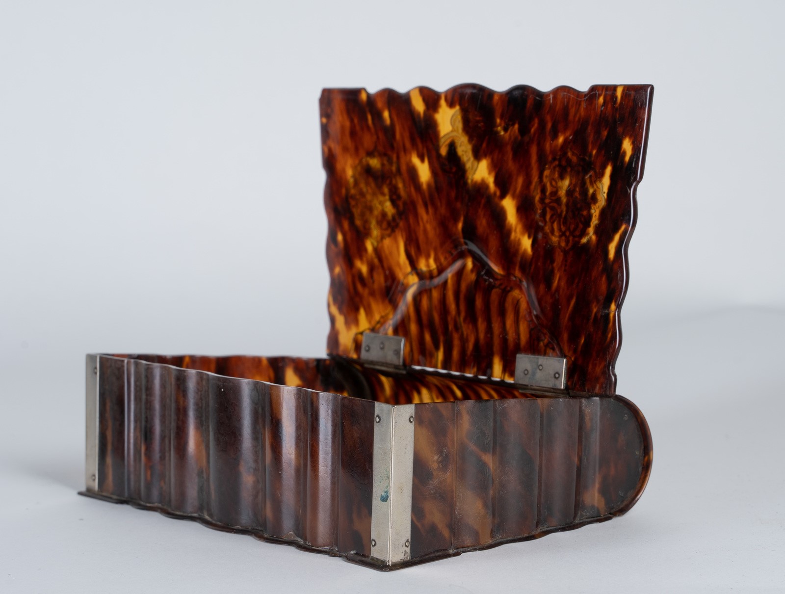 Islamic Art A tortoise shell purse shaped box decorated with arabesques and tughra Turkey, early 20th century . . Cm 21,00 x 14,00.