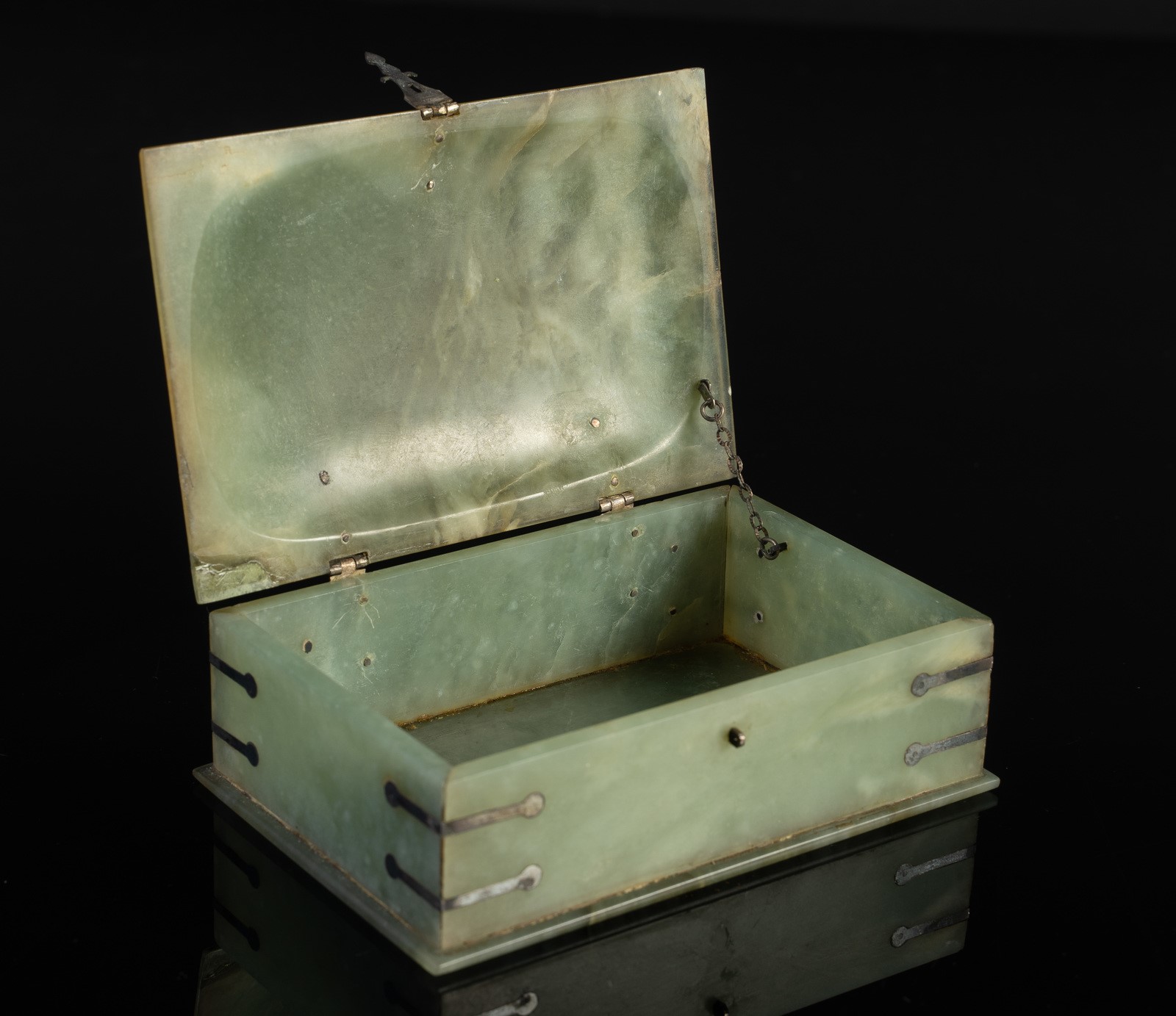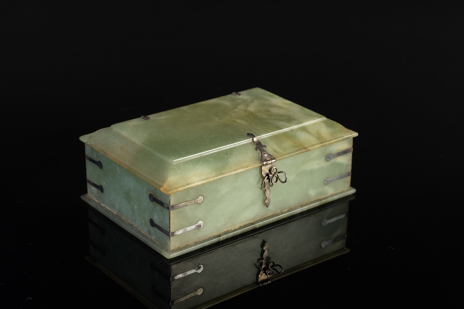 Islamic Art A Mughal jade box with silver fittings India, 18th-19th century . . Cm 8,00 x 12,50.