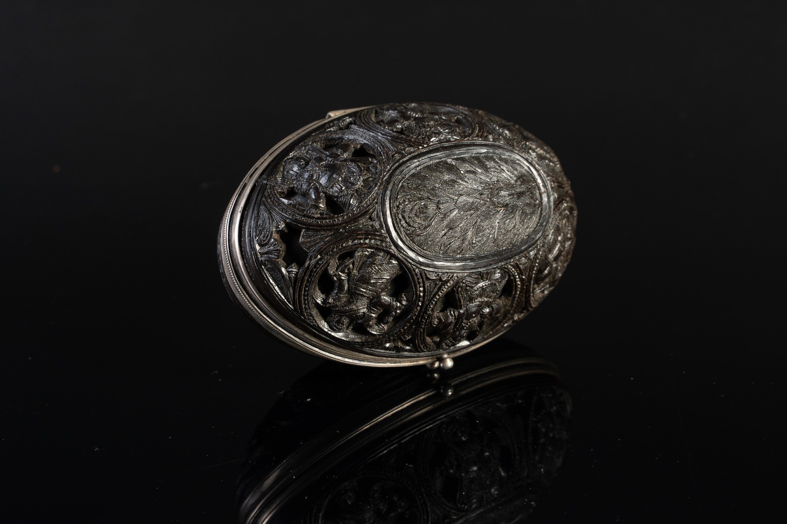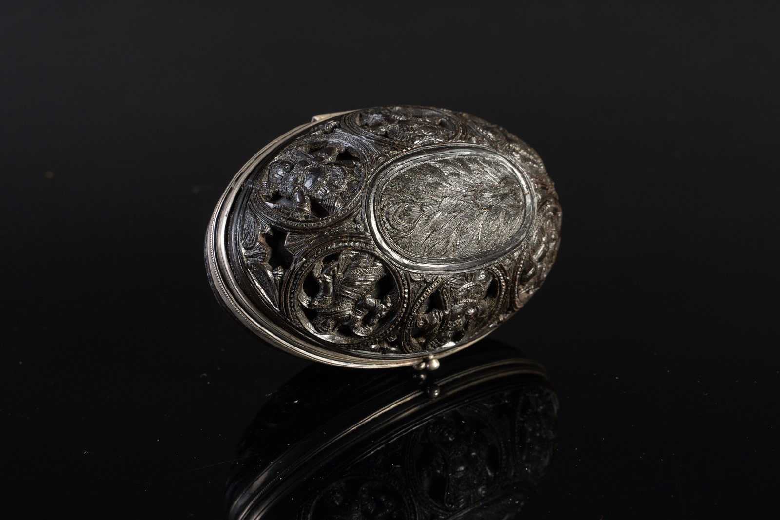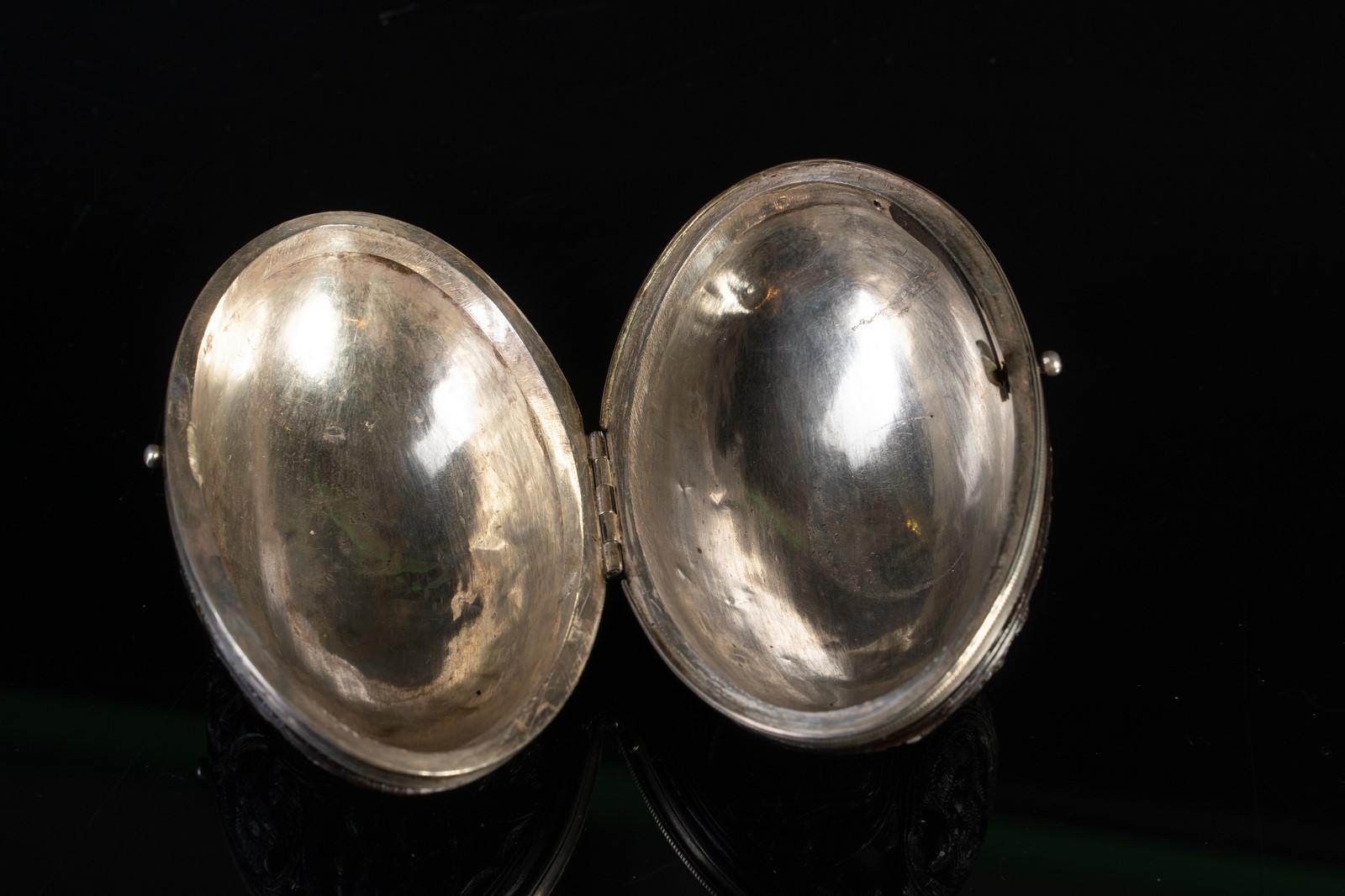 Islamic Art A finely carved silver and coconut egg shaped box India, 19th century . . Cm 10,00.