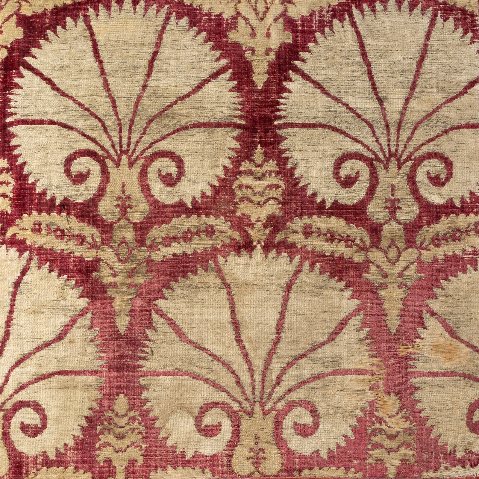 Islamic Art An Ottoman voided velvet (chatma) textile fragment decorated with fan carnation patternTurkey, Bursa, late 16th - early 17th century . . Cm 55,50 x 56,00.