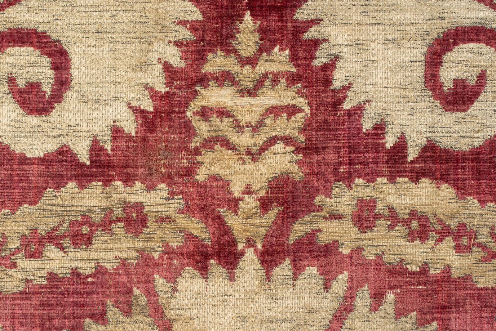Arte Islamica An Ottoman voided velvet (chatma) textile fragment decorated with fan carnation patternTurkey, Bursa, late 16th - early 17th century .