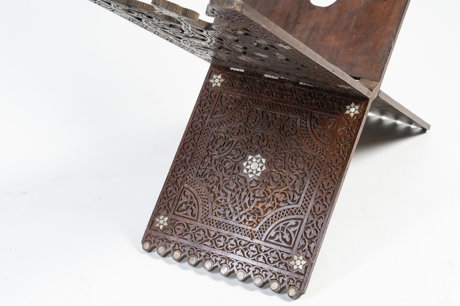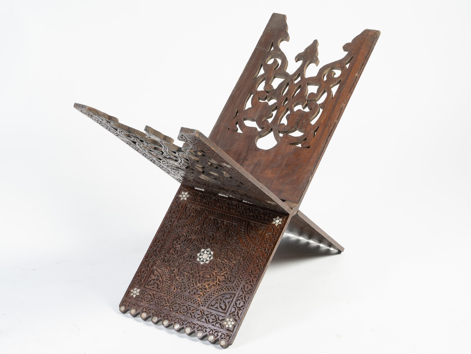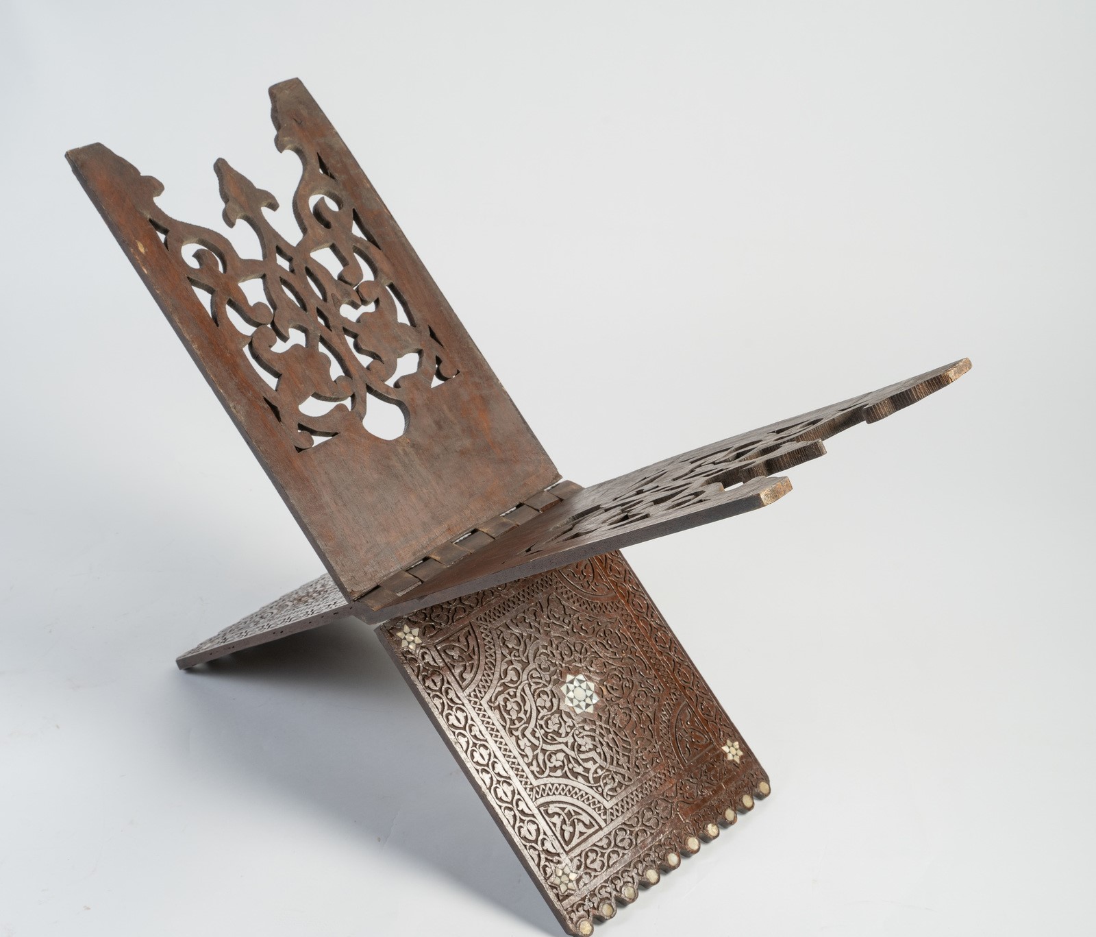 Arte Islamica A large mother-of-pearl inlaid folding Quran stand Near East, late 19th-20th century .