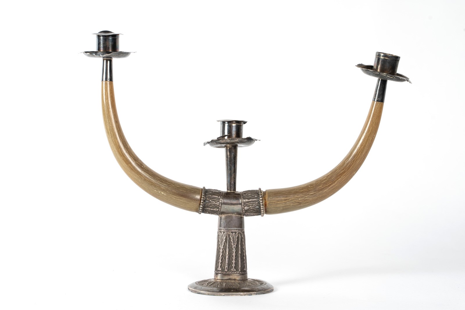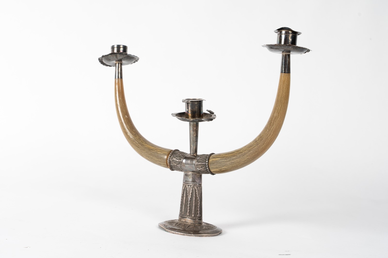 Islamic Art A silver and bufalo horn candlestick Ottoman Empire, early 20th century . . Cm 34,00 x 25,00.