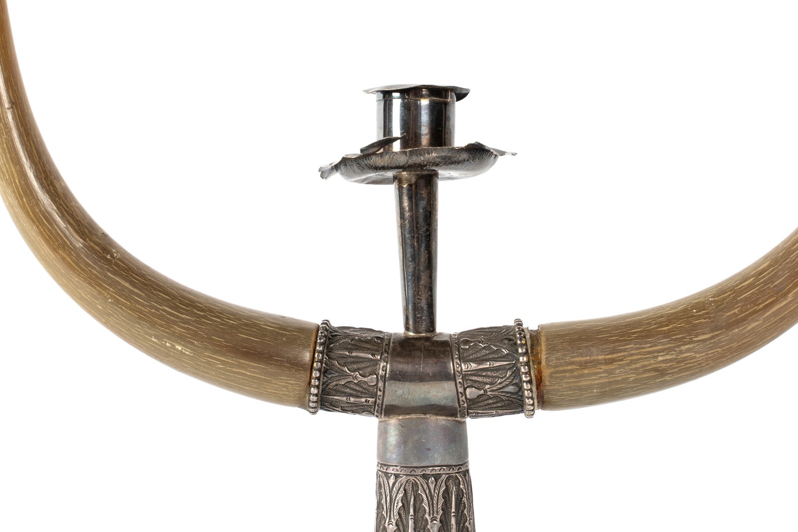 Arte Islamica A silver and bufalo horn candlestick Ottoman Empire, early 20th century .