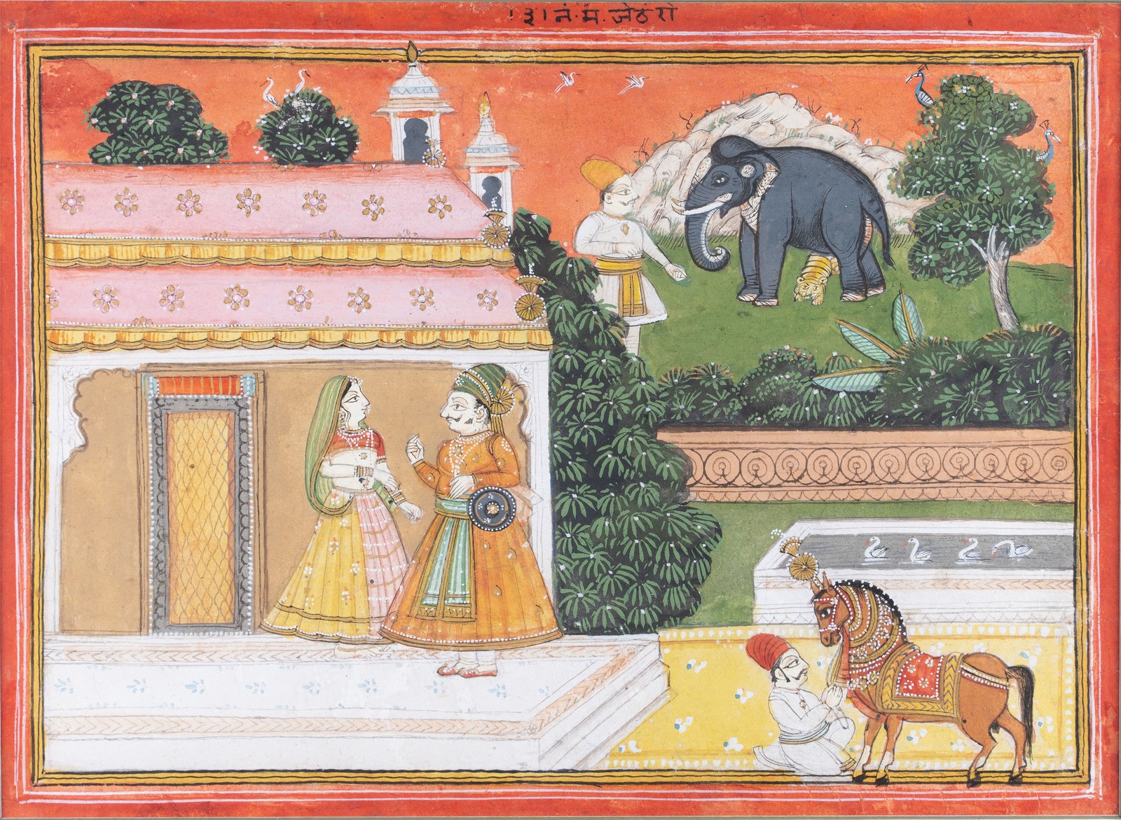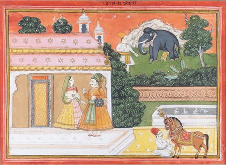 Arte Indiana A miniature depicting Raja and a princess Northern India, 19th century .