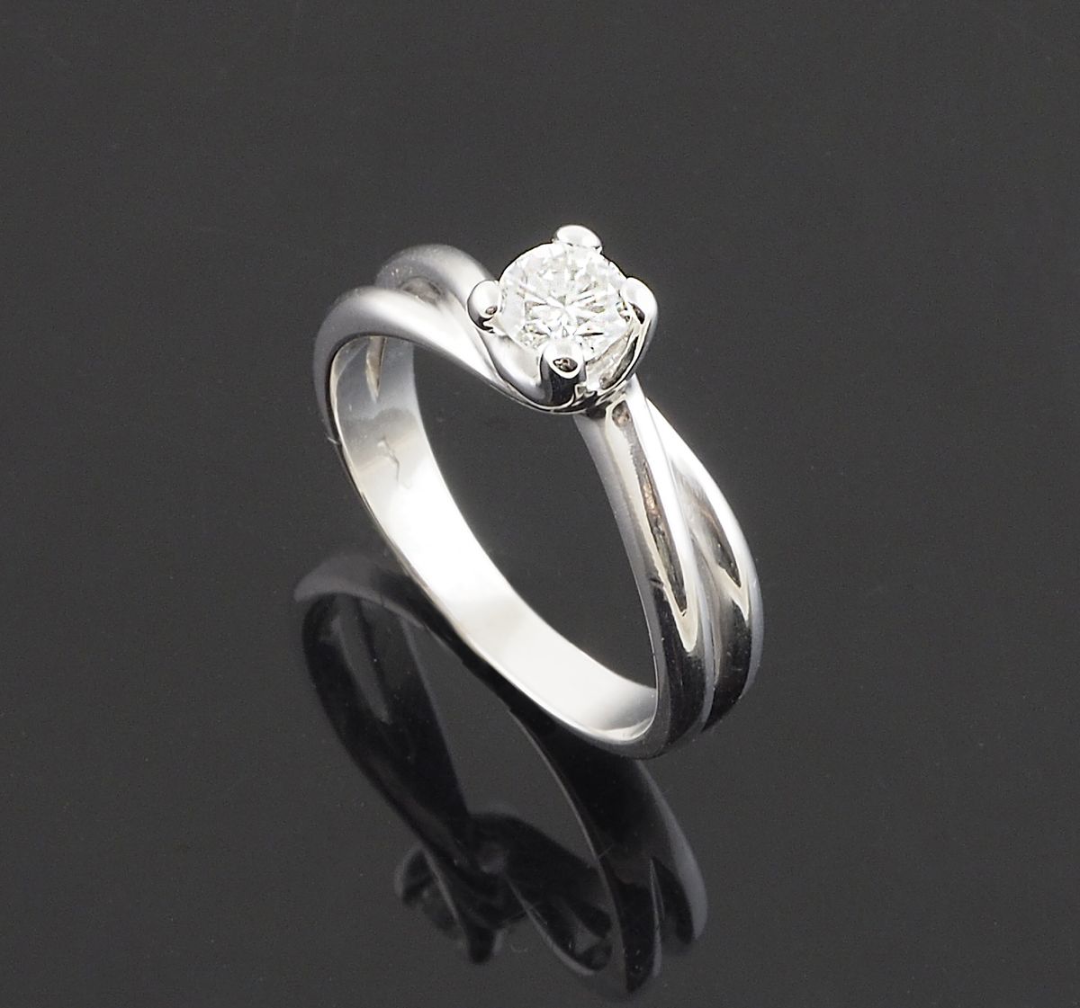 Anello solitario in oro bianco con diamante di ct 0,50, Colore H, Purezza IF