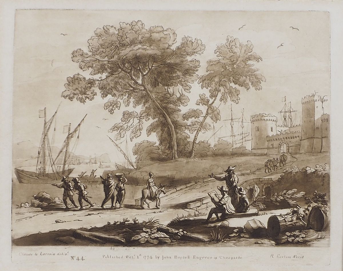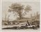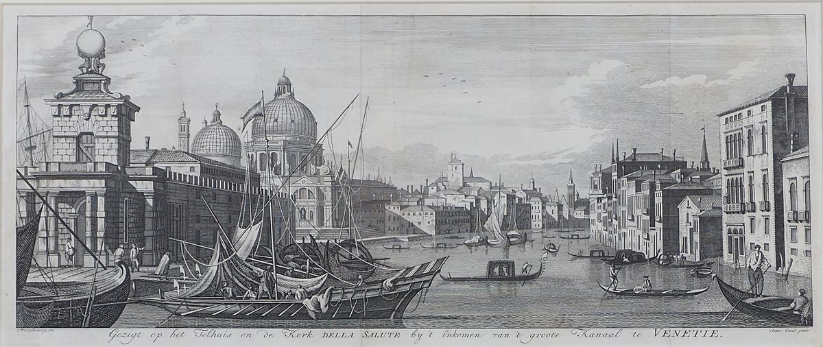 Lotto di 2 stampe raffiguranti paesaggio e veduta di Venezia, incorniciate. Misure diverse.