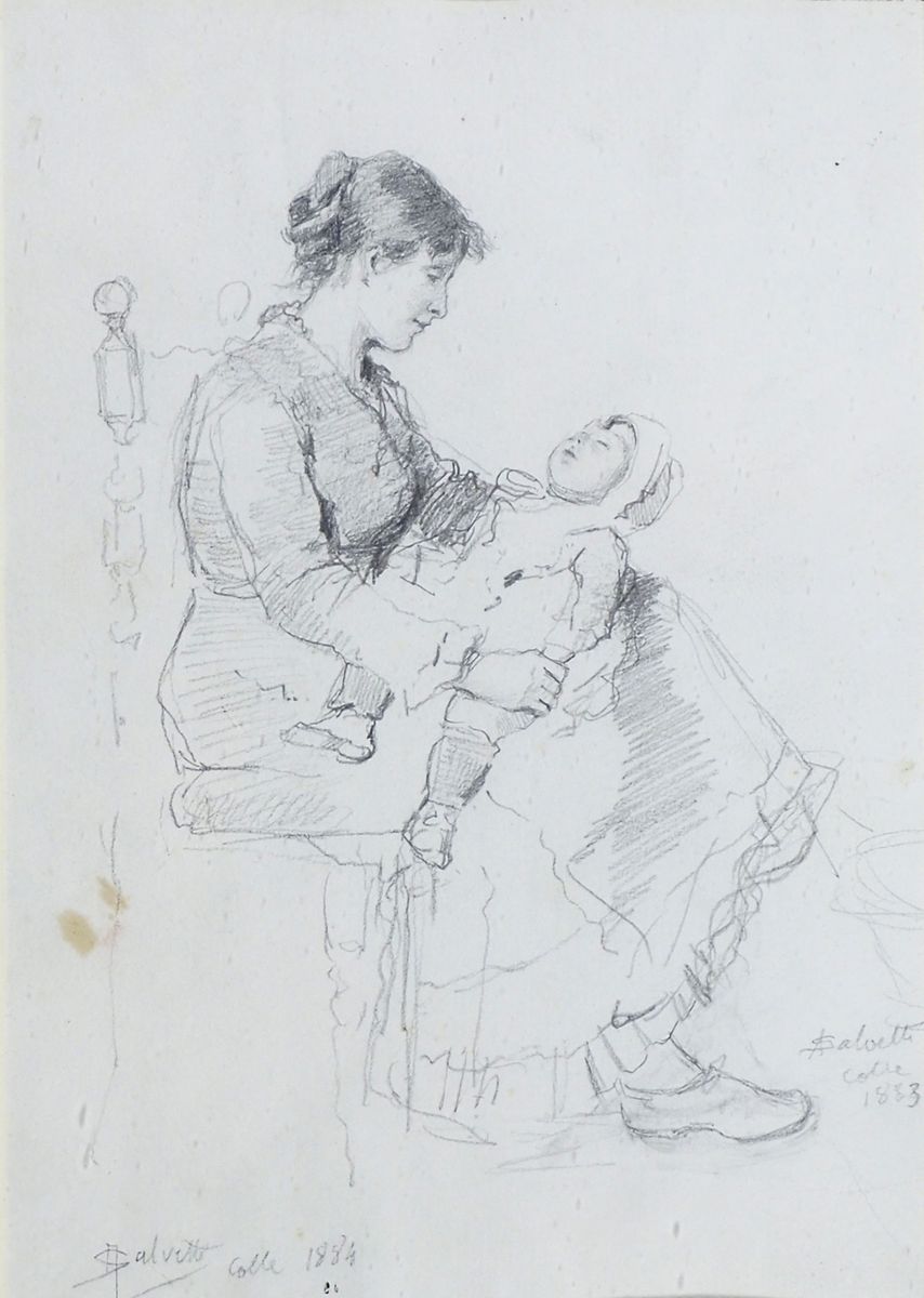 Lotto di 2 disegni a matita incorniciati. Misure diverse.