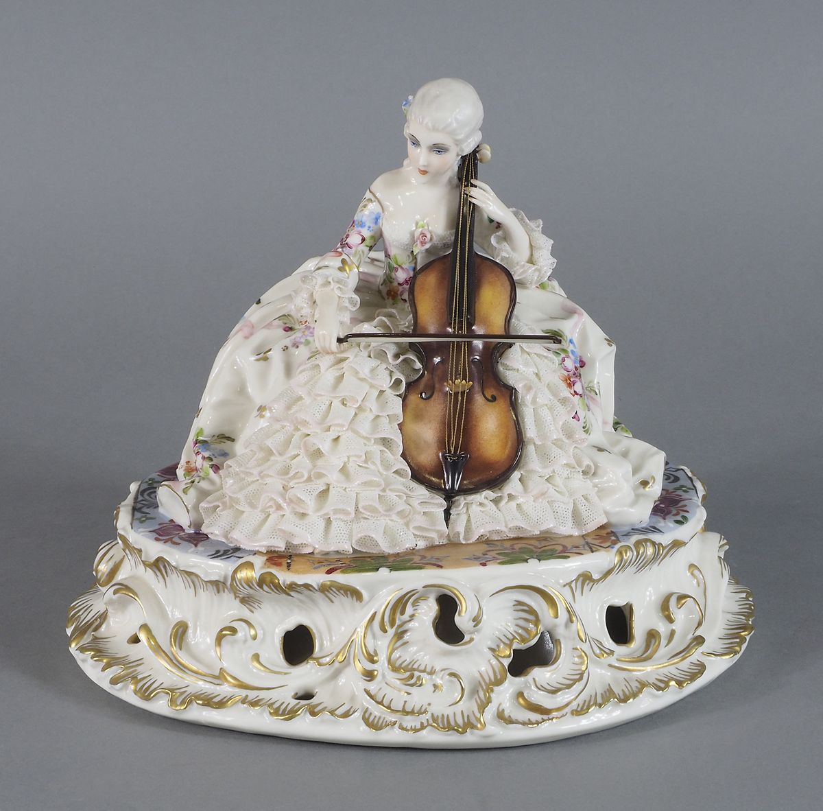 Fabris: gruppo in porcellana policroma raffigurante suonatrice. H. cm. 22. (difetti).