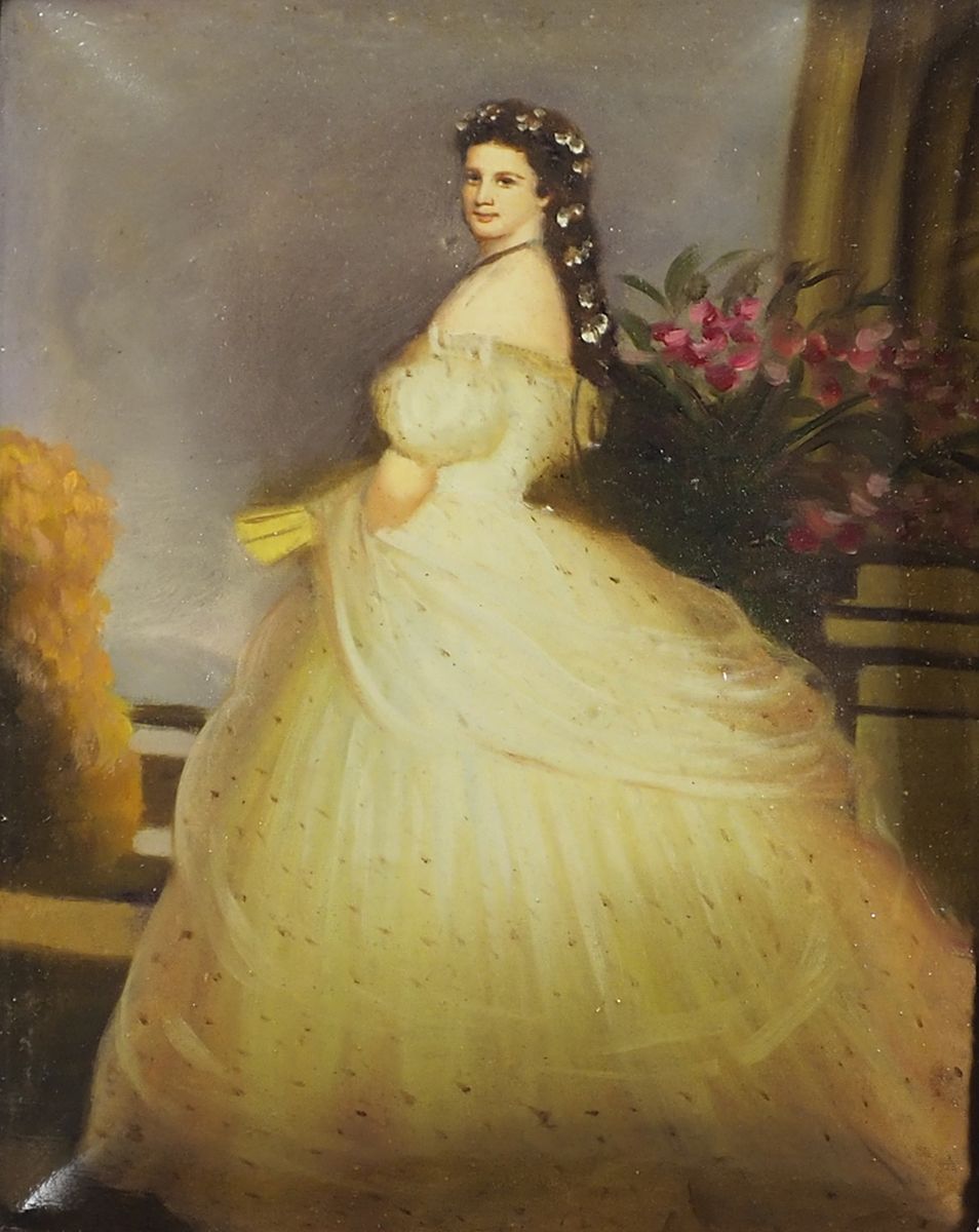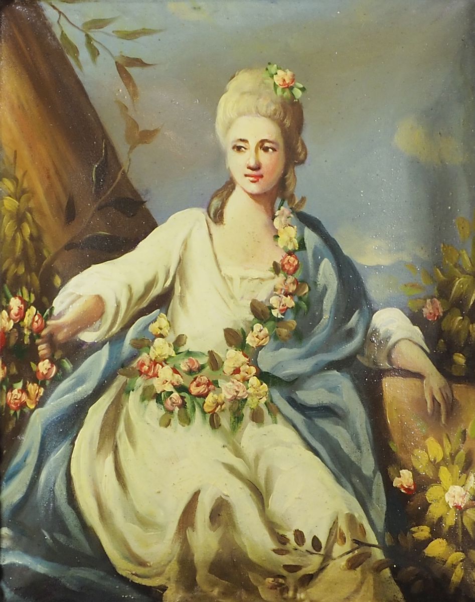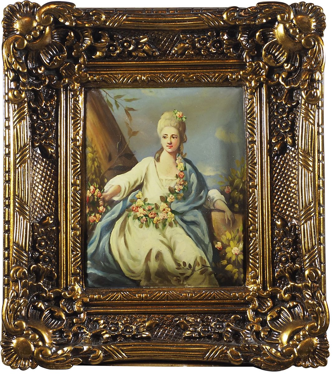 Lotto di 2 oli su tavola incorniciati raffiguranti gentildonne. cm. compresa cornice 48x39.