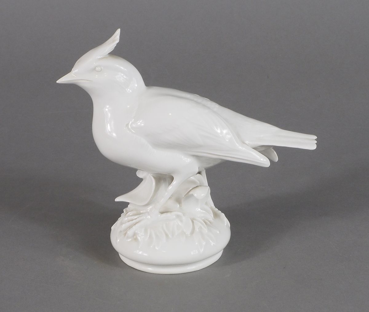 Meissen: gruppo in porcellana bianca raffigurante uccello. Lung. cm. 16.